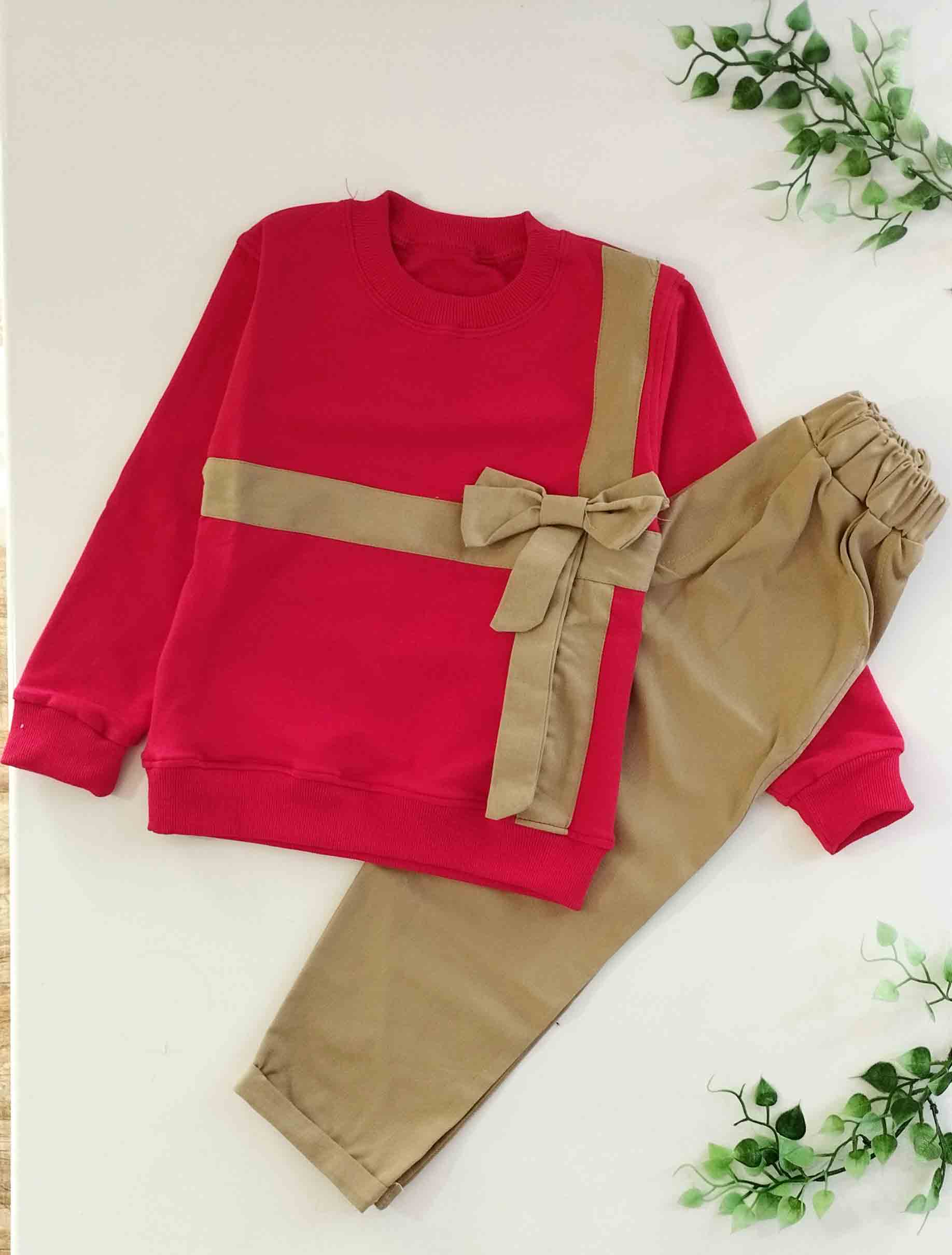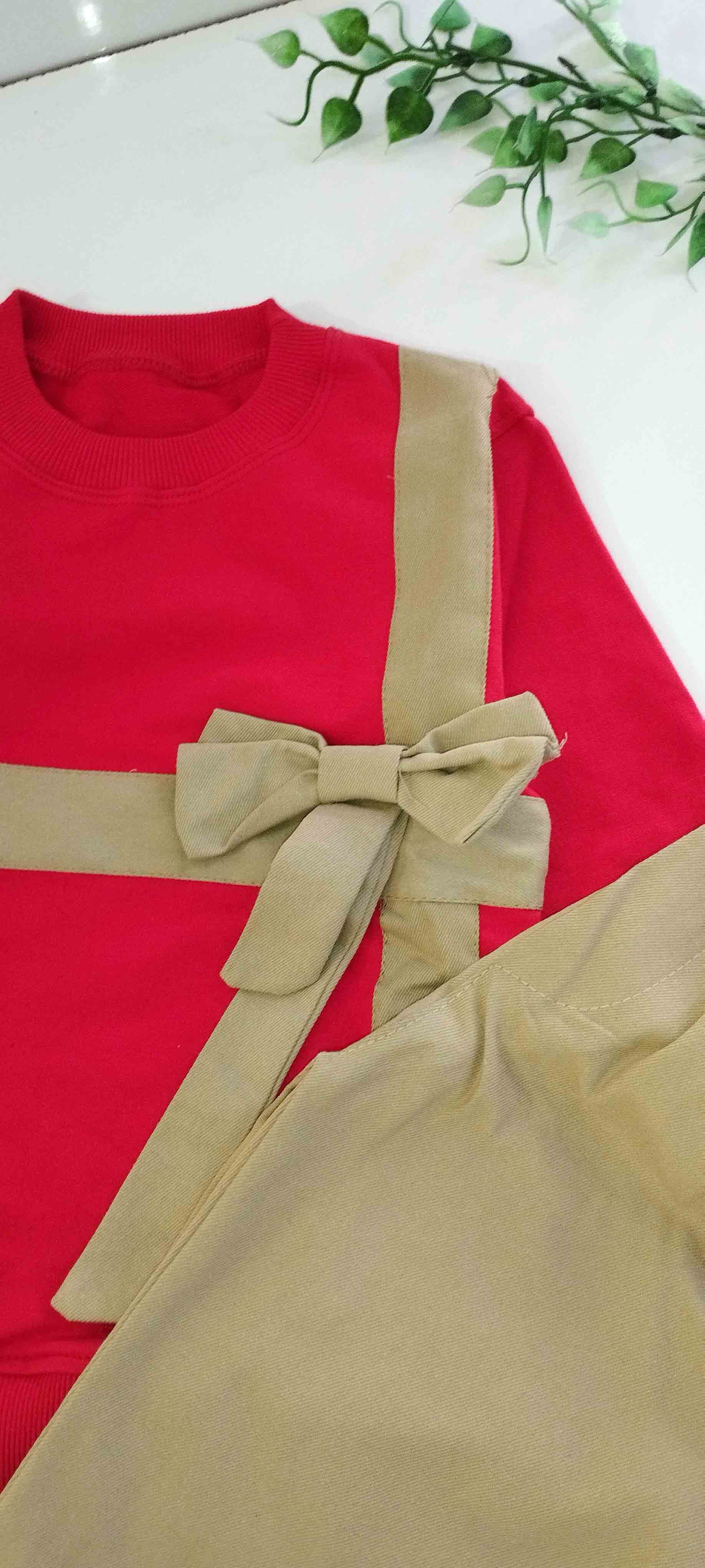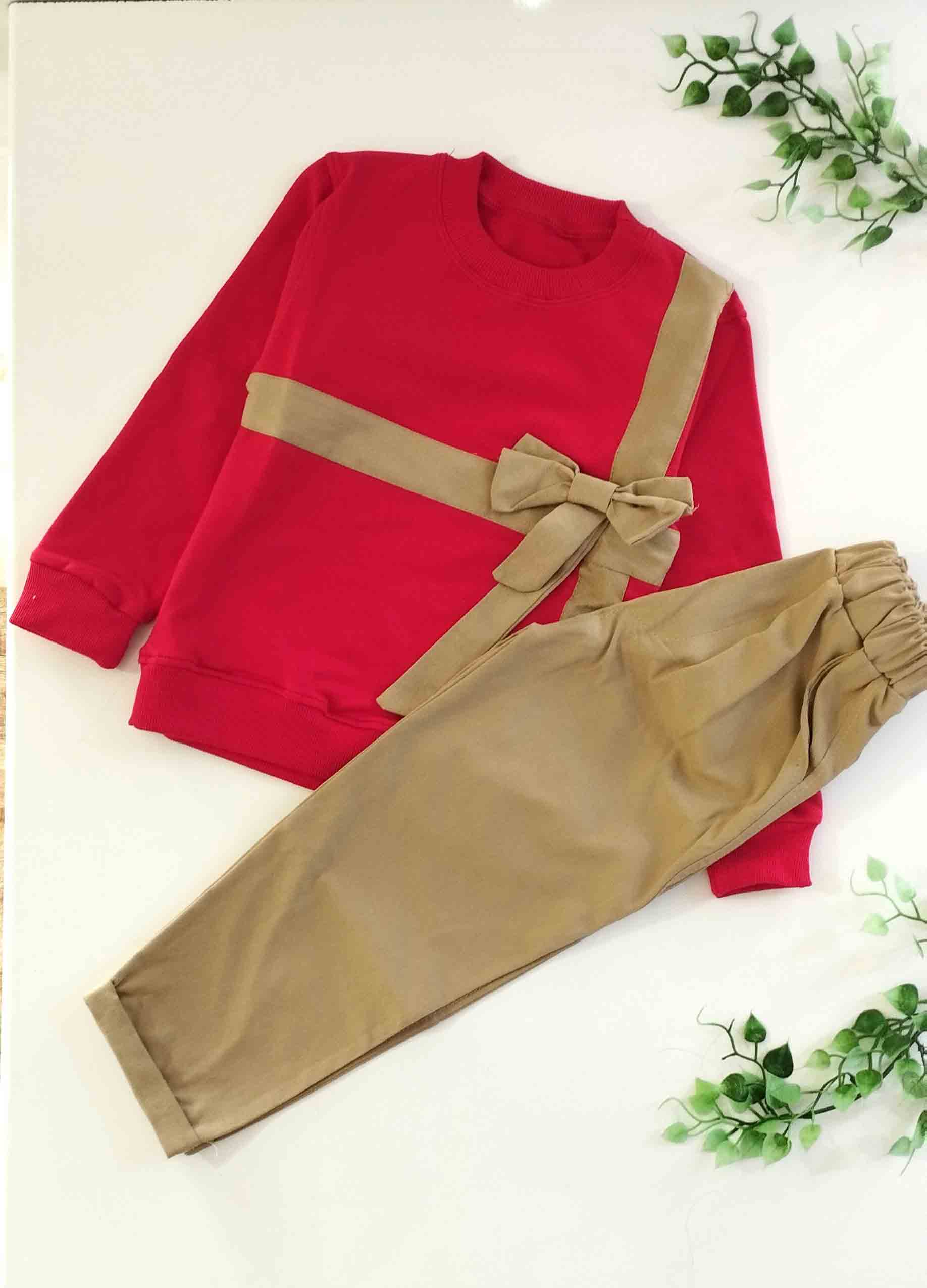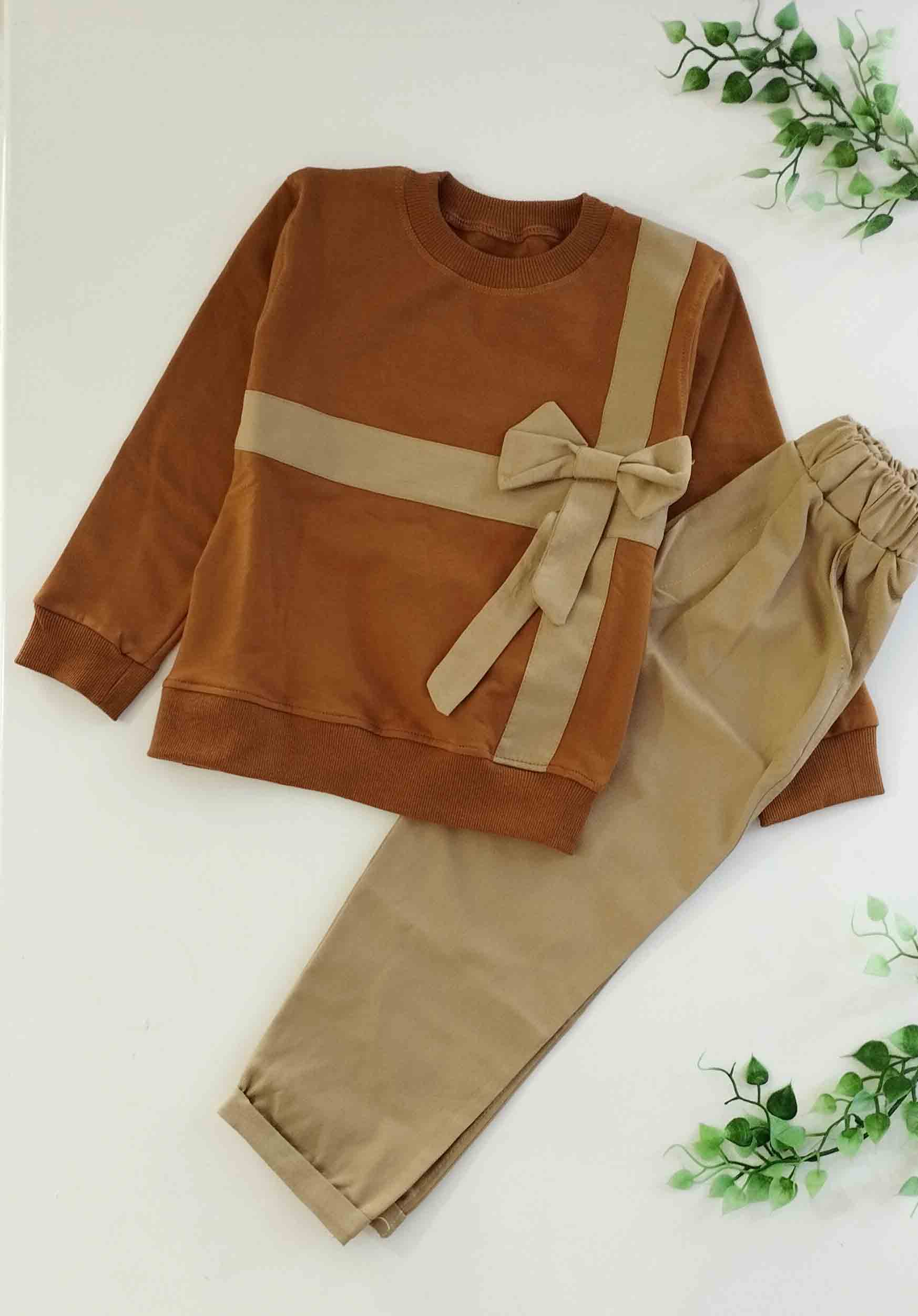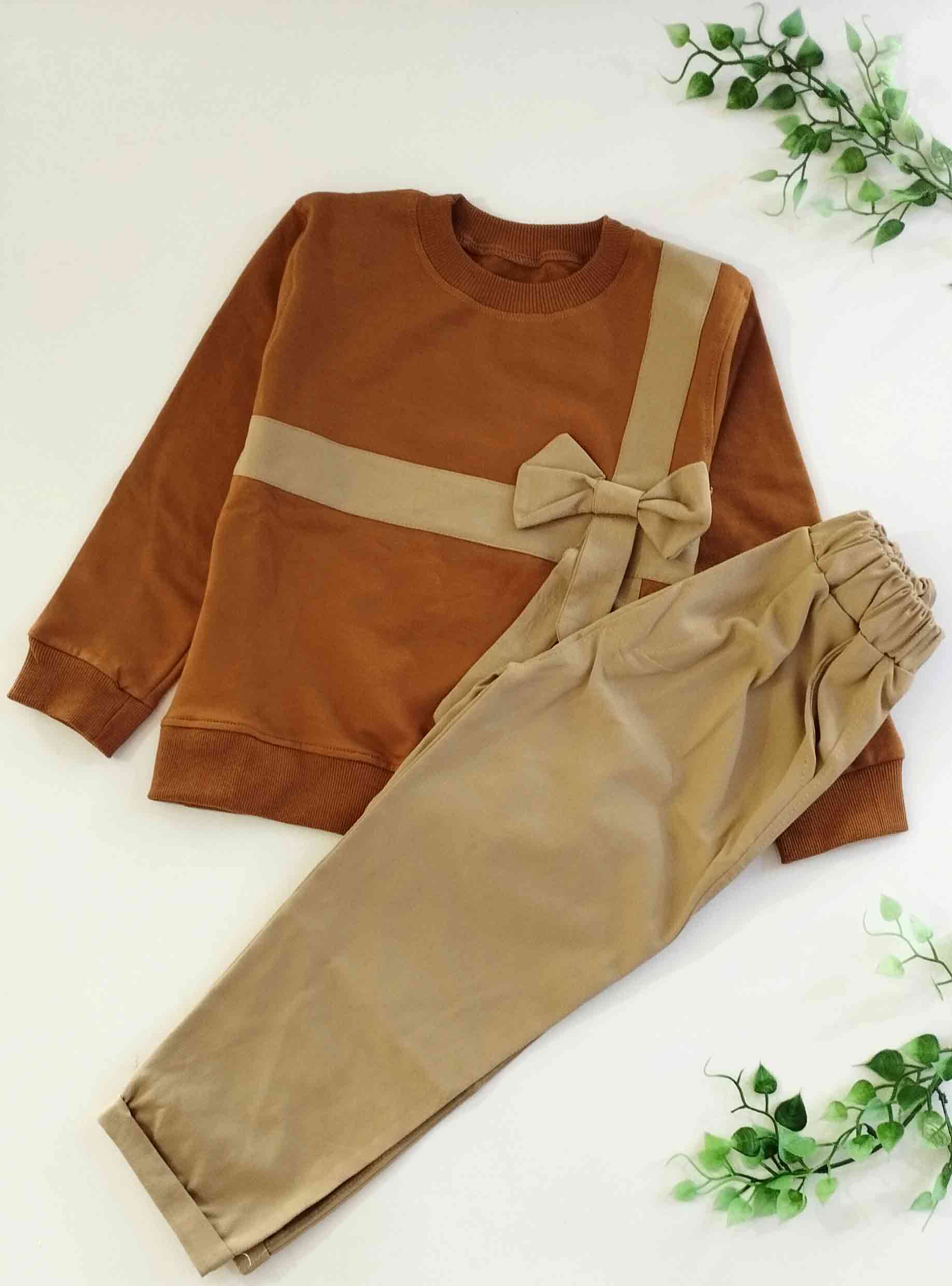 ست دخترانه کتان پاپیون مجلسی بیرونی شیک