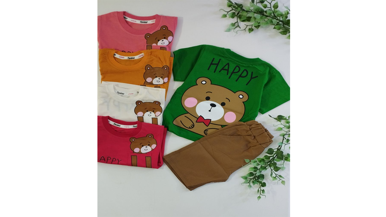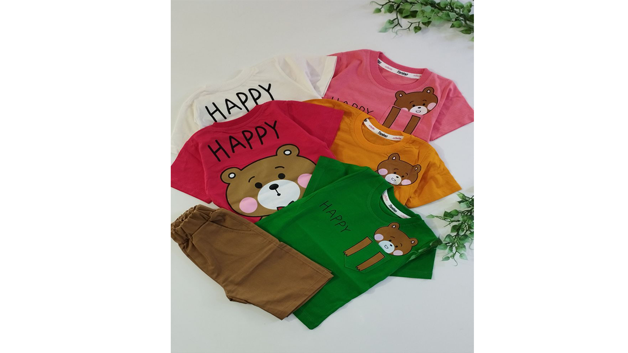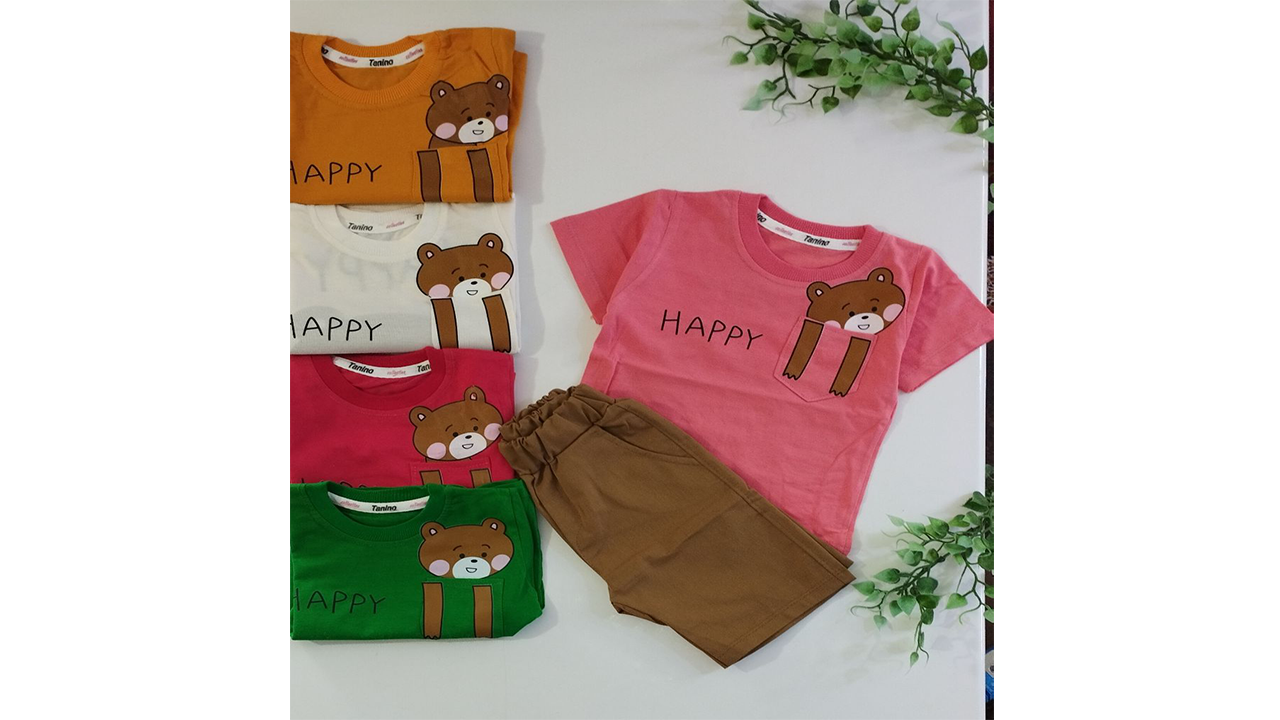🦸🧚 تی شرت شلوارک کتان جیب خرس هپی