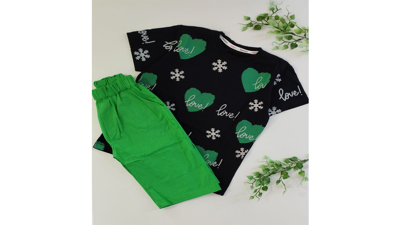 تی شرت شلوارک کتان دخترانه طرح قلب